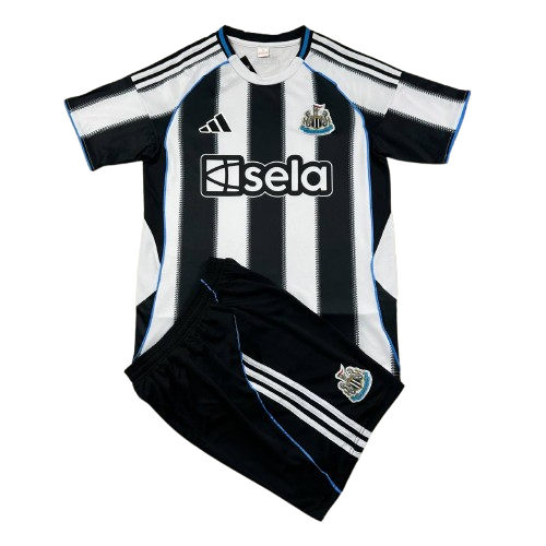 Домашня форма "Ньюкасла" на сезон 2025-2026 традиційно має чорно-білий смугастий дизайн. Порівняно з минулим сезоном смуги стали не такими широкими і загалом здається світлішою через більшу кількість білого кольору. Як третій акцентний колір був обраний блакитний, який добре римується з клубною емблемою.